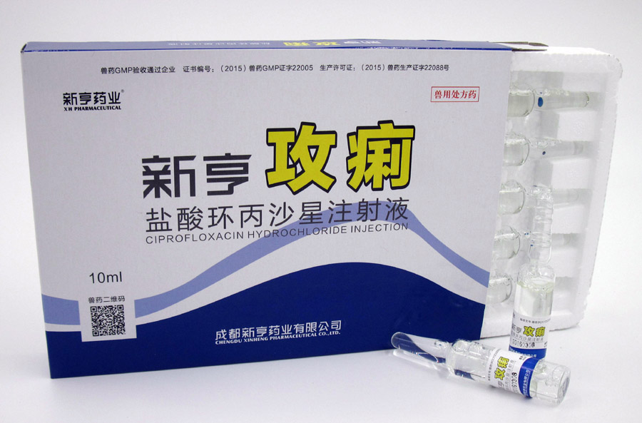 新亨攻痢-盐酸环丙沙星注射液 【兽药名称】 通用名称:盐酸环丙沙星注射液 商品名称:新亨攻痢