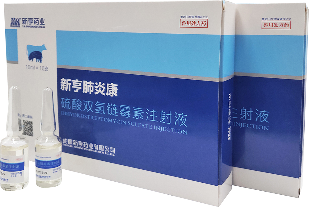 新亨肺炎康┃硫酸双氢链霉素注射液 【兽药名称】 通用名称:硫酸双氢链霉素注射液 商品名称:新亨肺炎康