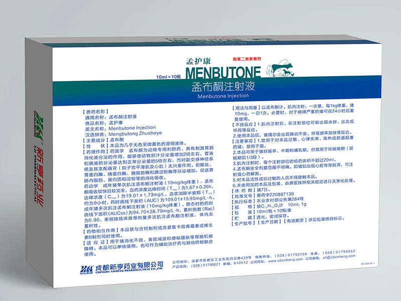 孟护康 ▏孟布酮注射液 【兽药名称】 通用名称:孟布酮注射液 商品名称:孟护康 英文名称:Menbutone Injection